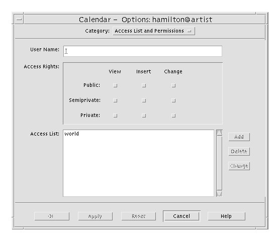 3. In the User Name field, type calendar-name@hostname for the calendar to which you want to grant access.