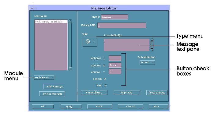 Once you have created a message as described in "To Create a Message Dialog Box", you must determine when and how it should be displayed. Usually messages are displayed after a certain piece of logic has been executed. For example, if a user types digits in a text field that is designed to accept a name, you will want to post an error message informing the user that digits are not valid.