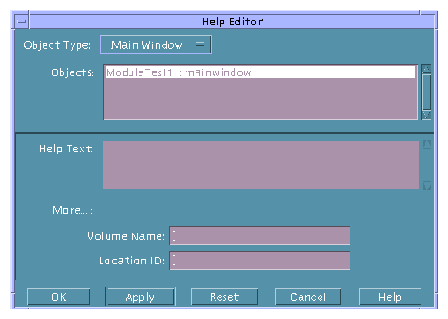 Note: You must create help for an object if you want access to a help volume from a help dialog box. If you create help for an object and include a Volume Name and Location ID, the More button will be active in the help dialog box.