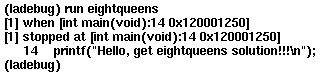 When you start the debugger as explained in Section 3.1, the Source View is initially empty. Figure 2-1 shows the Source View after a program has been brought under debugger control (by directing the debugger to run a specific image, in this example, eightqueens).