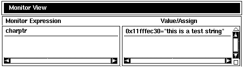 If you select the name of a pointer (access) variable and click on the Monitor push button, the debugger displays the address and value of the referenced object in the Value/Assign column of the Monitor View (see Figure 4-12).