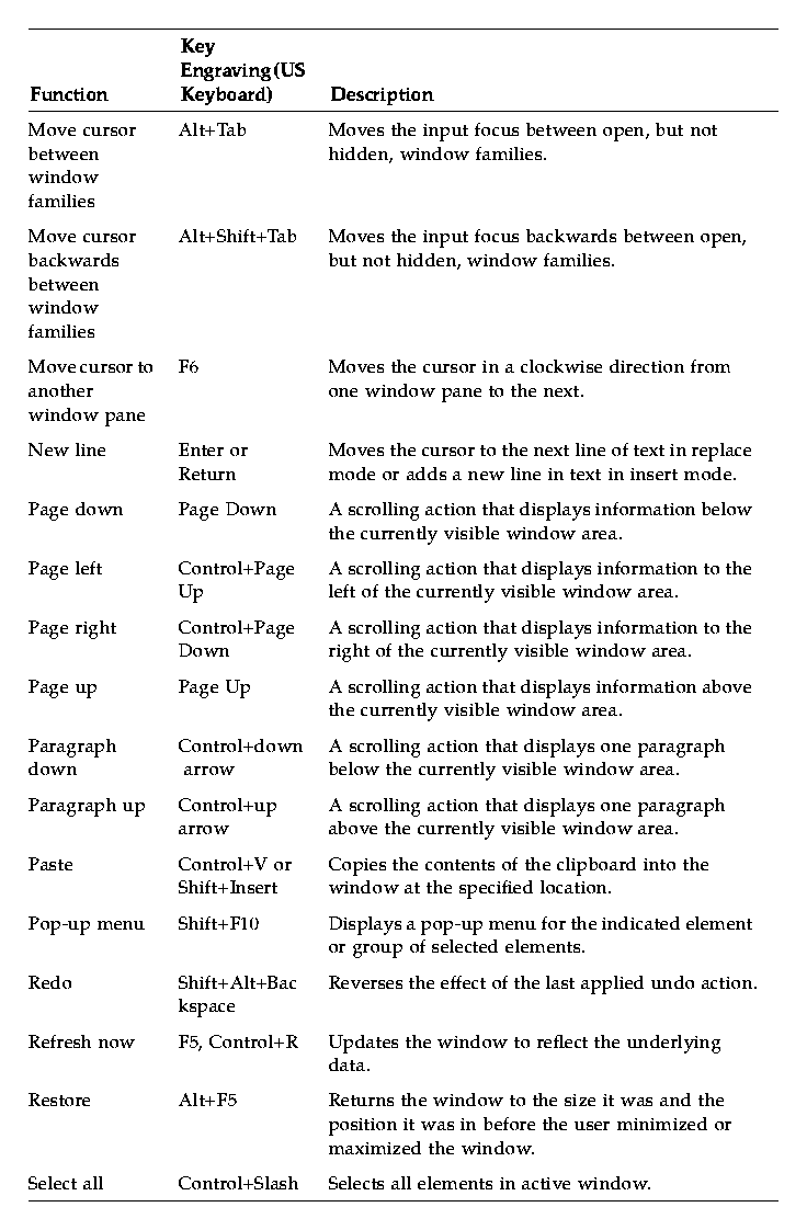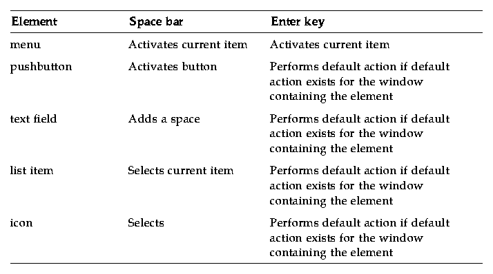 Table A-3 Keyboard Mappings for Space Bar and Enter Key