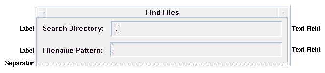 This creates a top-level shell that serves as the parent of a Form widget, which is created next.Figure 4-5 First area of script_find Window