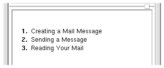 Here's a simple list. Because the type isn't specified, it defaults to a bulleted list. Because spacing isn't specified, it defaults to loose, which leaves a blank line between each item.