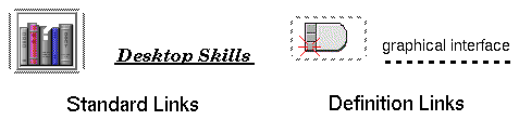 Solid or dashed underscores identify words or phrases that are hyperlinks. The solid underscore, or standard hyperlink, is most common. When the hyperlink is selected, the related topic is displayed. An author designates whether the hyperlink topic is displayed in the current help window or a new window. The dashed underscore represents a definition link. When selected, the related topic is displayed in a quick help window. A gray, open-corner box (dashed or solid line) designates a graphic hyperlink.