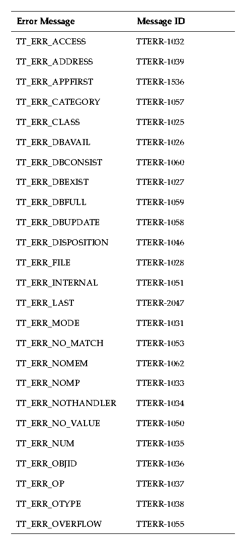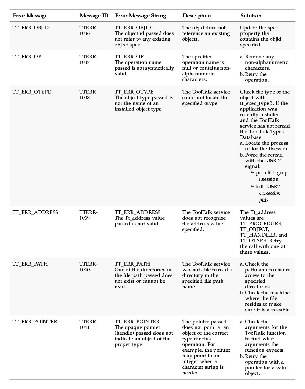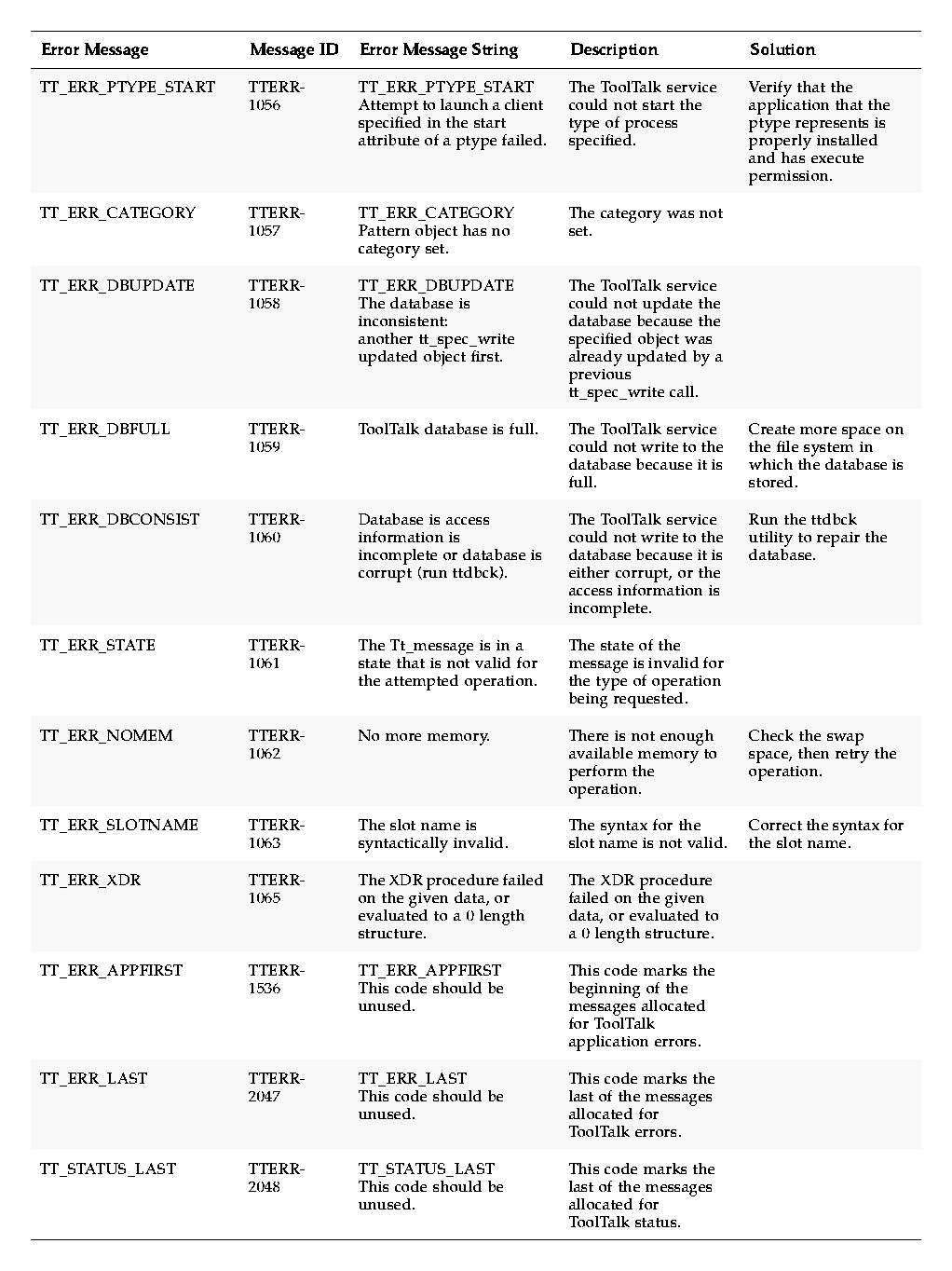 Table 7-1 Alphabetical List of ToolTalk Error Messages (continued)