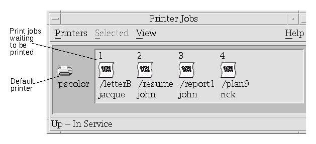 Note: If you submit a job to a printer that is down (flag is showing), it may never be printed even though it appears in the jobs list.