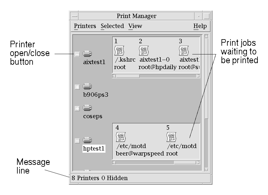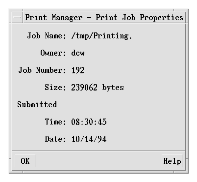 After you submit a document (print job) for printing, you can use the Print Manager or Printer Jobs applications to find out about the progress of the printing. Printer Jobs gives you information about jobs on a single printer. Print Manager shows all the printers that are on your system.