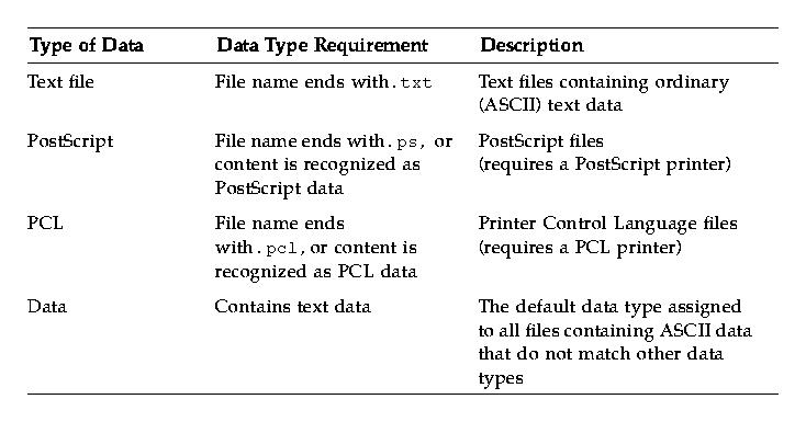 If applications are installed on your system that create other types of files, your system administrator can add printing capabilities for them.