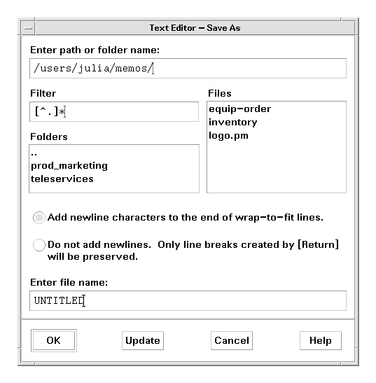 If you used Wrap To Fit, the Save dialog box includes an additional choice about handling line endings (see "Using Wrap To Fit").