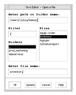 2. Select the name of the document you want to open, or type the document name in the Enter file name field.