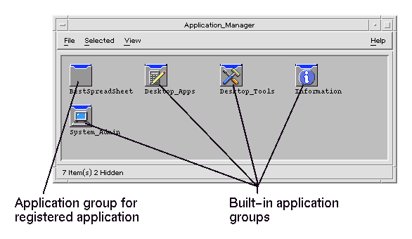The application groups in your Application Manager are either built in or registered by your system administrator. Application registration is a process by which an application lets the desktop know of its presence.