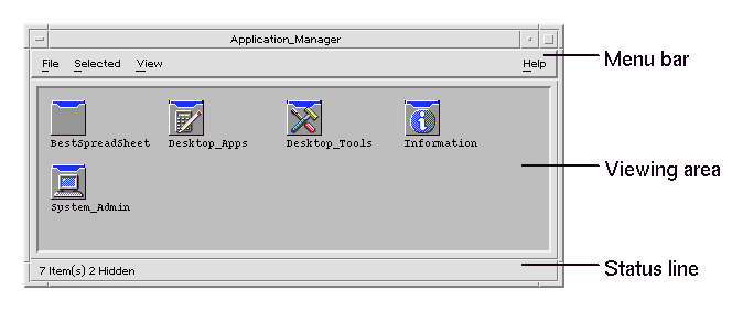 For more information about using the Application Manager menus and dialog boxes, see Chapter 5, "Managing Files with File Manager."