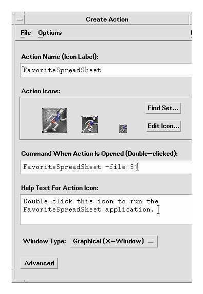 The desktop includes a tool called Create Action that makes it easy to create actions and data types. To open the Create Action window, double-click the Create Action icon in the Desktop_Tools application group.