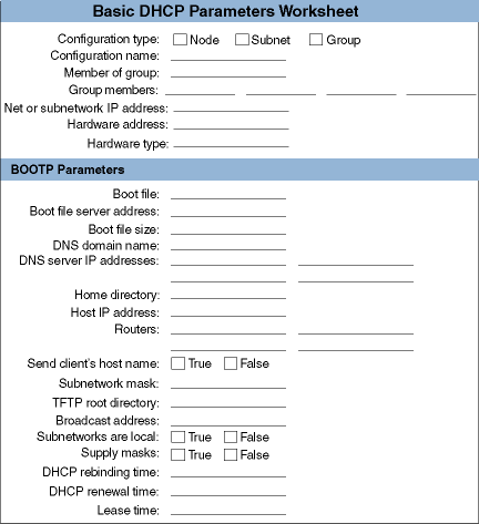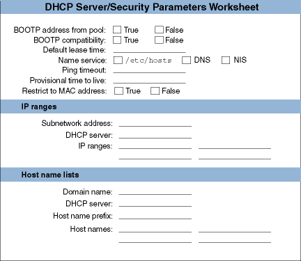Figure 7-2: DHCP Server/Security Parameters Worksheet