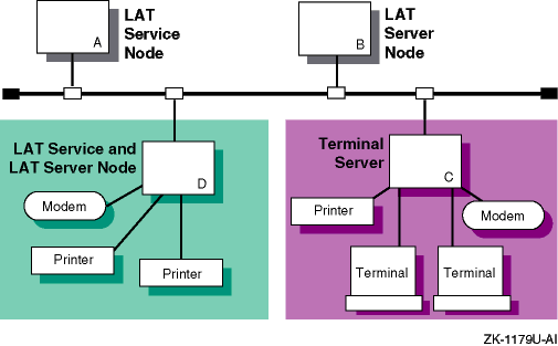 The Local Area Transport (LAT) protocol supports communications between host computer systems and terminal servers with terminals, PCs, printers, modems and other devices over local area networks (LANs). The Tru64 UNIX LAT implementation is a STREAMS-based driver.
