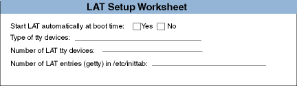 LAT terminal server login password You can require that users enter a password to gain access to terminal servers. (Refer to your terminal server documentation for more information.)