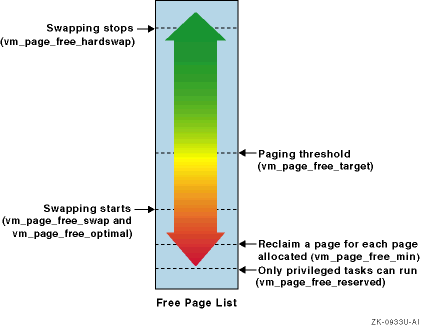 The virtual memory subsystem tracks all the physical memory pages in the system. Page lists are used to identify the location and age of each page. The oldest pages are the first to be reclaimed. At any one time, each physical page can be found on one of the following lists: