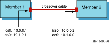 Figure 6-1: Two Cluster Members Directly Connected by a Single Crossover Cable