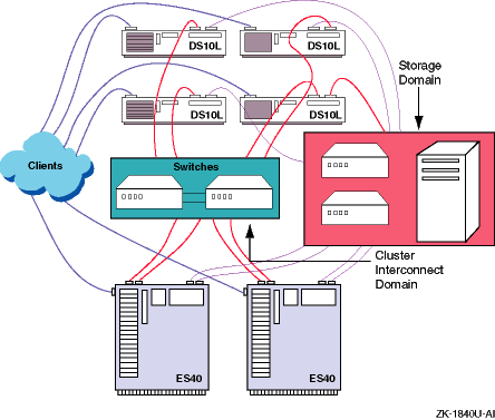 Figure 6-7: Cluster Including Both AlphaServer DS10L and AlphaServer ES40 Members