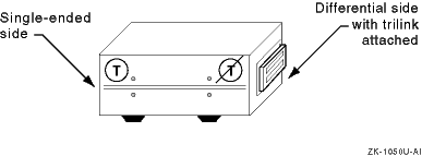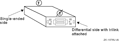 Both the single-ended side and the differential side of each DWZZA and DWZZB signal converter have removable termination. To use a signal converter, you must remove the termination in the differential side and attach a trilink connector to this side. To remove the differential termination, remove the five 14-pin termination resistor SIPs (located near the differential end of the signal converter). You can attach a terminator to the trilink connector to terminate the differential bus. If you detach the trilink connector from the signal converter, the shared bus is still terminated (provided there is termination power).