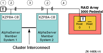 Figure 11-12: Externally Terminated TruCluster Server Configuration with an RA3000 Pedestal with Active/Passive Failover