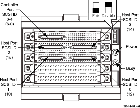 If you connect a DWZZH-05 host port to an RA3000 pedestal host port to provide active/active failover, you must disable fair arbitration on the DWZZH-05 by placing the fair arbitration switch in the