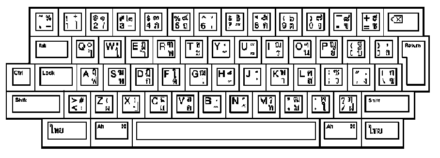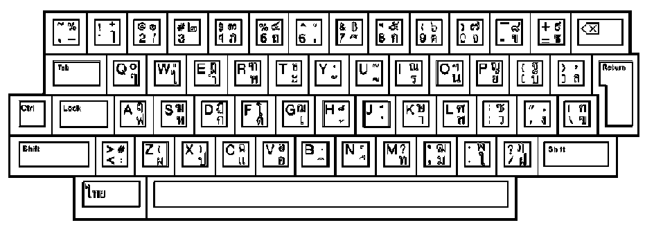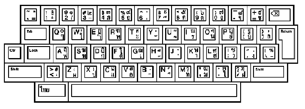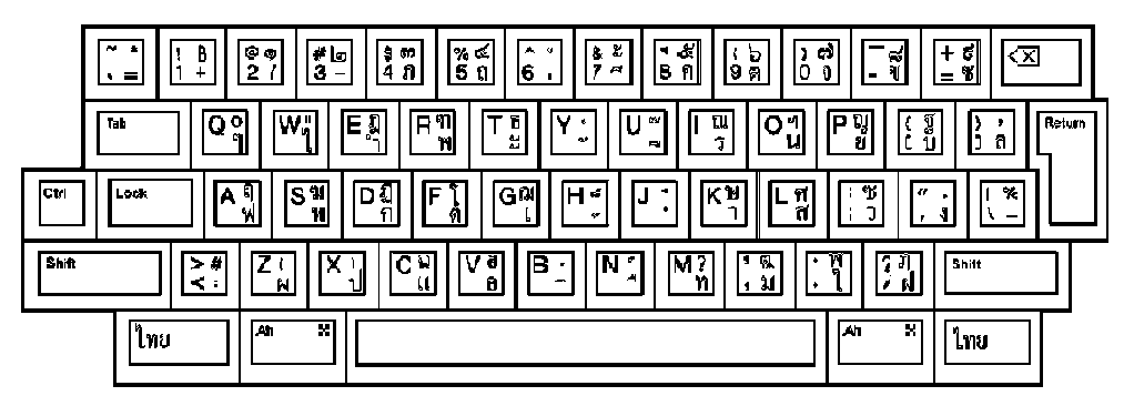 The Tru64 UNIX operating system software supports the following Thai keyboard types: