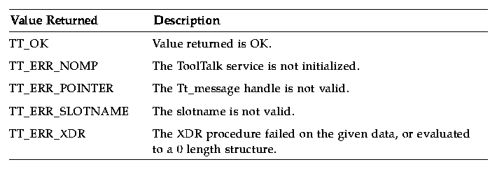 Note: To make the object a permanent ToolTalk item or visible to other processes, the creating process must call tt_spec_write().
