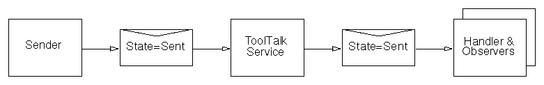 The ToolTalk service delivers a request to only one handler. The handler adds results to the message and sends it back. Other processes can observe a request before or after it is handled, or at both times; observers absorb a request without sending it back.