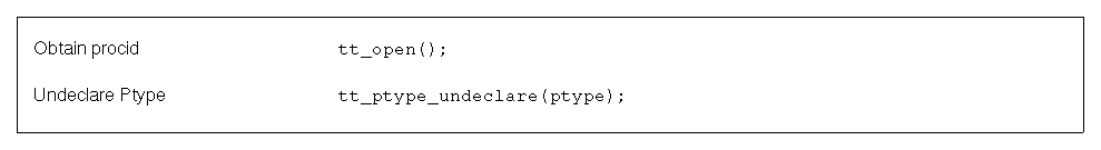 Caution: One invocation of tt_type_undeclare will completely unregister the ptype regardless of how many times the process has declared the ptype; that is, multiple declarations of the ptype are the same as declaring it once.